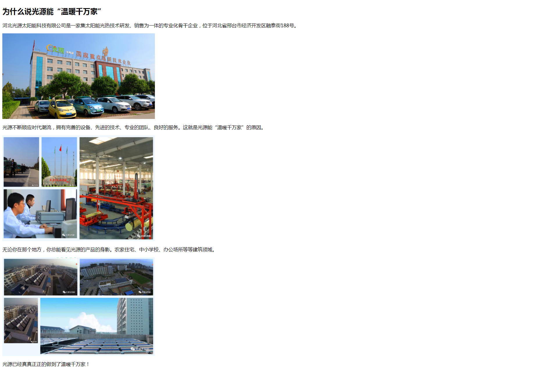 Copyright(C)2021 河北光源太陽能 E-mail: hbguangyuan@163.com 地址: 邢臺經濟開發(fā)區(qū)王快鎮(zhèn)北屋村永安路2199號 關于光源 | 公司動態(tài) | 聯(lián)系我們 | 法律聲明
